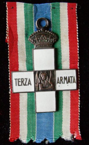 - ISCRIZIONI sul dritto della croce, nelle braccia orizzontali - TERZA ARMATA - lettere capitali - a rilievo -