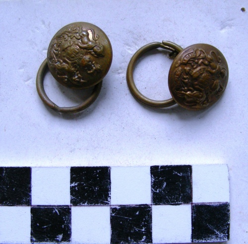 Disco di rame convesso con stemma in rilievo. Maglietta posteriore co inserito un anello a spirale.