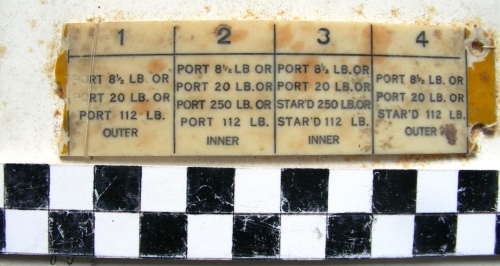 - ISCRIZIONI su tutta l'etichetta - / 1 / 2 / 3 / 4 / ------------------------------------------------------ PORT 8½ LB.OR PORT 8½ LB.OR PORT 8½ LB.OR PORT 8½ LB.OR PORT 20 LB.OR PORT 20 LB.OR PORT 20 LB.OR PORT 20 LB.OR PORT 112 LB. PORT 250 LB.OR STAR'D250LB.OR STAR'D 112 LB. OUTER PORT 112 LB. STAR'D 112 LB. OUTER INNER INNER - caratteri alfanumerici neri - a incisione e punzoni - inglese