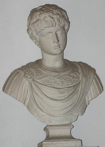 - NOTIZIE STORICO CRITICHE L'opera, collocata con diversi studi di teste su mensole d'appoggio nei depositi della Galleria C, sembra una variante del busto, di simili dimensioni, collocato nell'auditorium e vestibolo (inv. XVI-ND). Ritorna, identica, la veste, mentre difformi appaiono i tratti fisionomici del volto e l'inclinazione del capo.