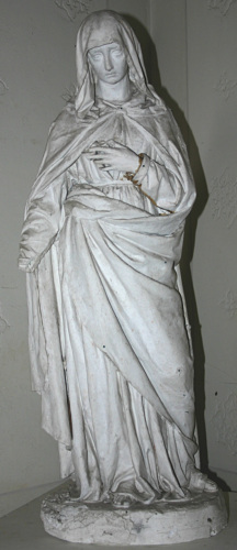- NOTIZIE STORICO CRITICHE Distontosi soprattutto nell'esecuzione di statue o monumenti funerari, lo scultore padovano Giovanni Rizzo, in quest'occasione, affronta un tema a lui congeniale, che gli permette di indagare l'umano dolore e la divina pietà di questa addolorata dal capo mestamente reclinato e dagli occhi gonfi di pianto represso. L'ampia veste, oltre al volto delicato e triste, lascia affiorare le mani che sottolineano, nel gesto adottato, un'intima e sincera commozione.