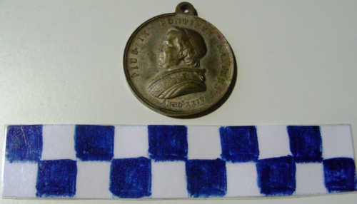 Di forma circolare. Sul recto, al centro in rilievo, busto accollato a sinistra di Pio IX con berretto, mozzetta e stola. Iscrizione lungo la corona. Sul verso, in rilievo, interno di San Pietro con la riunione del Concilio. Iscrizione in esergo.