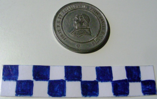 Di forma circolare. Sul recto, in cerchio, busto accollato a sinistra di Pio IX con berretto, mozzetta e stola. Iscrizione lungo la corona. Sul verso, al centro, in cerchio, la vista della basilica di San Pietro con l'obelisco. Iscrizione lungo la corona .