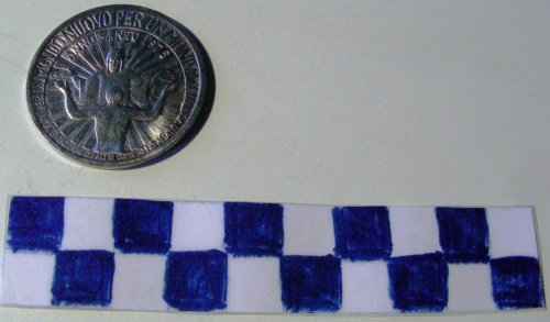 Di forma circolare. Sul recto, al centro, in rilievo una colomba, a sinistra, ad ali spiegate, con un ramo d'ulivo nel becco. Iscrizione lungo la corona. Sul verso, al centro, in rilievo, la figura di Cristo raggiante, a braccia aperte ad accogliere un fedele. Iscrizioni lungo la corona.