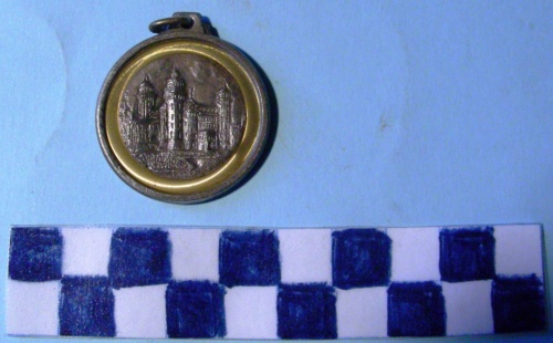 Di forma circolare. Sul recto, al centro, in rilievo, entro corona circolare dorata una veduta del castello Estense e monumenti di Ferrara. Iscrizione in rilievo sul verso. Anello all'appiccagnolo.