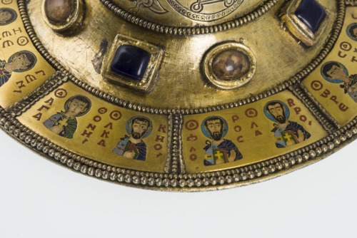 - ISCRIZIONI sotto la coppa - KYPIE BOHΘEI PΩMANΩ OPΘOΔOΞ[Ω ΔEC]ΠOTH - maiuscoli - a smalto - greco