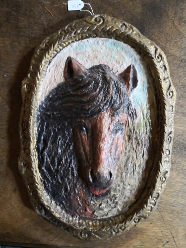 cartone coperto su un lato di cartapesta modellata, dipinta e verniciata