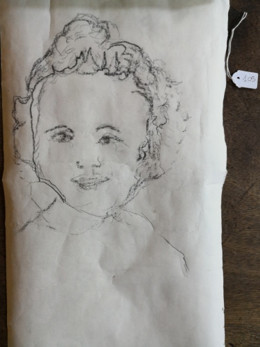 disegno a carboncino sul retro di un manifesto di recupero
