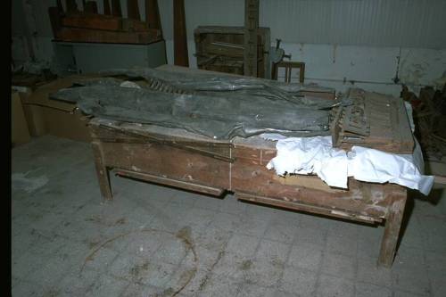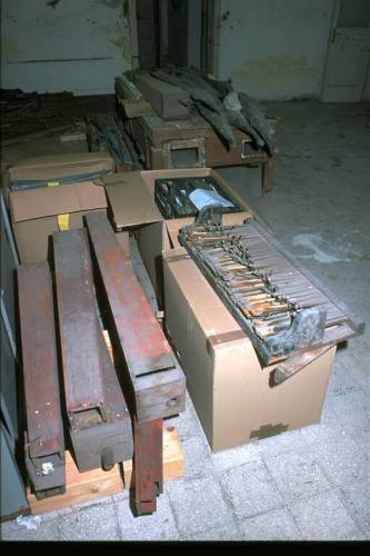Dall'analisi del materiale superstite si possono dedurre con certezza le seguenti caratteristiche: prospetto in unica campata, a cuspide centrale con ali laterali ascendenti, formato da 23 canne in stagno appartenenti al Principale 8', labbro superiore a mitria, andamento delle bocche rettilineo, profilo planimetrico rettilineo. Ai piedi del prospetto le canne della Tromba Soprani e dell'Ottavino. Consolle a finestra. Trasmissione meccanica sospesa. Una tastiera, originale, cromatica di 56 tasti, estensione DO 1-SOL5, ricoperta in osso ed ebano. Pedaliera, originale, a leggio di particolare foggia, (tipica delle opere dei fratelli Pugina), cromatica di 20 pedali, estensione DO 1 - SOL 2, reali 12 note, cromatici con foro, ricoperti in ottone. Registri azionati da tiranti a manetta a movimento orizzontale con incastro a sinistra, in due file verticali; cartellini a stampa, originali, in cattive condizioni e spesso frammentari.