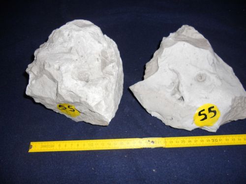 Animalia Mollusca: due pezzi di dolomia, uno con impronte di gateropodi e uno con impronte di bivalvi. roccia della serie stratigrafica dolomitica | Italia , VENETO , AURONZO DI CADORE ( BL ), Marmarole