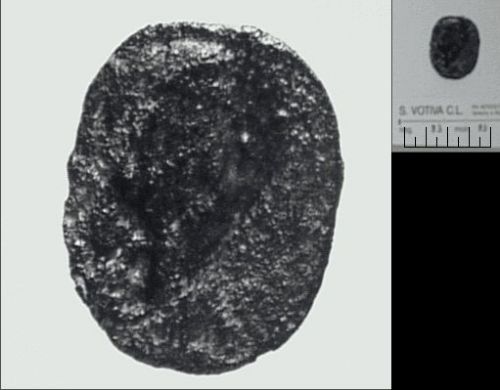 Dritto: [---];testa nuda di Augusto a d.. Rovescio: P.[LVRIVS AGRIPPA IIIVIR A.A.]A.F.F. attorno a S.C.