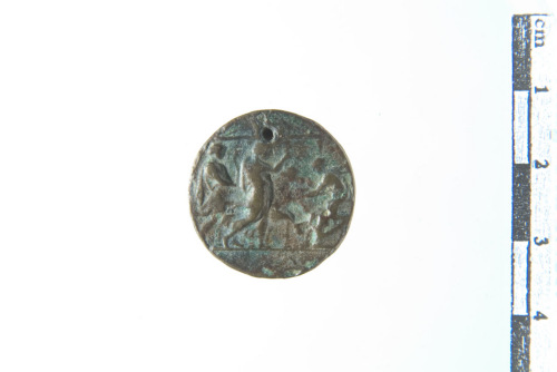 Dritto: Busto femminile diademato e drappeggiato a d.. Rovescio: Scena di sacrificio con una figura chinata a s. che tiene una giovenca, una in primo piano avanzante a d. con ghirlanda, una avanzante a d. in secondo piano con lyra; sullo sfondo un tempio (?)