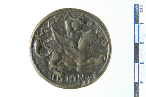 Dritto: Busto nudo di Antinoo di tre quarti a s.; contorno a bordo. Rovescio: Antinoo su grifone in volo a d.; contorno a bordo