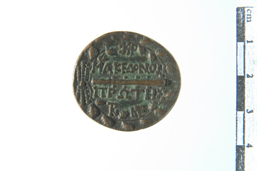 Dritto: Busto diademato di Artemide con faretra a d. entro scudo macedone. Rovescio: Clava entro ghirlanda di foglie di quercia a d.