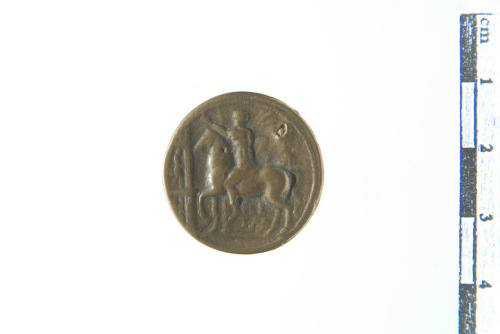 Dritto: Testa di Antinoo a s., contorno perlinato. Rovescio: Imperatore (?) a cavallo incedente a s. con braccio levato verso un arco trionfale seguito da due soldati; contorno perlinato