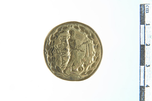 Dritto: Busto laureato di Apollo a d.. Rovescio: Apollo Gryneion incedente a d. con patera e ramo d'alloro con taeniae, ai suoi piedi omphalos e anfora, tutto entro corona d'alloro