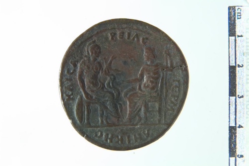 Dritto: Busto laureato e drappeggiato di Pescennio Nigro a d.; contorno perlinato. Rovescio: Zeus seduto in trono a s. con scettro e mano destra protesa in avanti, di fornte a figura femminile elmata seduta su seggio a d. con scudo appoggiato a terra dietro di lei e bastone attorno al quale è aggrovigliato un serpente; contorno perlinato