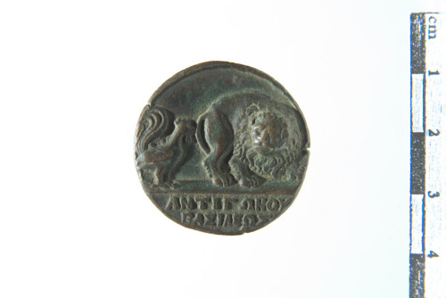 Dritto: Busto laureato e barbato a d.; controno a bordo. Rovescio: Leone retrospicente stante a d., rivolto verso gallo stante a d. alle sue spalle; contorno a bordo