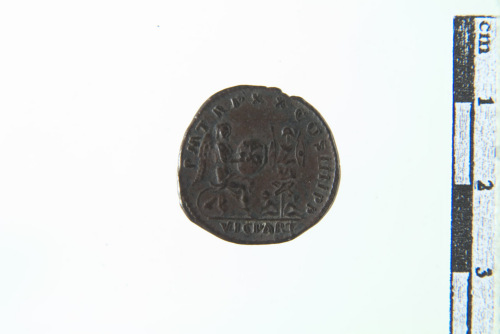Dritto: profilo di Vitellio a d.. Rovescio: Vittoria a s. e trofeo darmi a d.