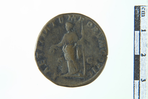 Dritto: profilo laureato di Pertinace a d.. Rovescio: la Laetitia stante a s. regge corona e scettro