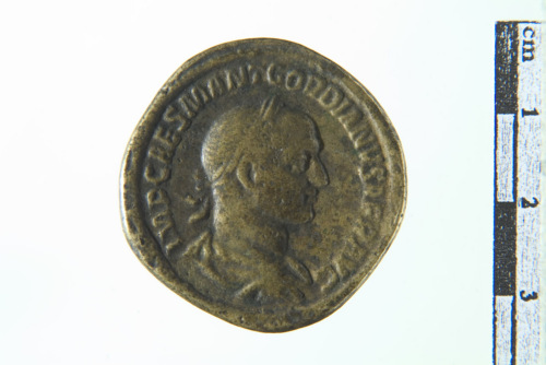 Dritto: busto laureato di Gordiano a d.. Rovescio: busto laureato di Gordiano a d.