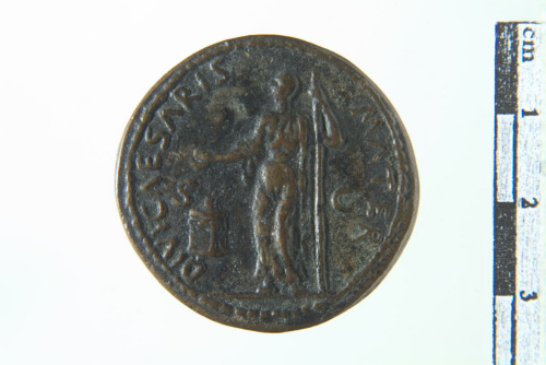 Dritto: busto di Domizia a d.. Rovescio: Domizia stante a s. con scettro nella s. e con una patera nella d. sacrificante su ara a s.