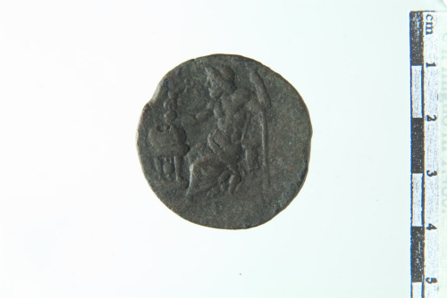 Dritto: Busti accollati a d. di Settimio Severo drappeggiato e radiato e di Giulia Domna drappegiat e semilunato; contorno perlinato. Rovescio: Zeus seduto in trono a s. con scettro e Nike, di fronte a lui lebete su tripode (?); contorno perlinato