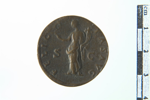 Dritto: busto di Plotina a d.. Rovescio: Felicitas stante con cornucopia