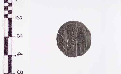 Dritto: S. Marco a d., in piedi di fronte, porge il vessillo al Doge a s. in piedi, volto a d.. Rovescio: Il Redentore in trono.