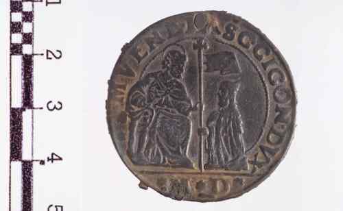 Dritto: Sopra linea orizzontale, San Marco, a s., seduto in trono volto a d., benedice con la d. e porge con la s. il vessillo, sormontato da croce, al Doge genuflesso, che lo riceve nella s., tenendo la d. contro il petto; sulla banderuola svolazzante a d., leoncino gradiente a s.; cerchio perlinato.. Rovescio: Sopra breve linea orizzontale, S. Giustina, in piedi di fronte con la testa inclinata a d., il seno trafitto da un pugnale, tiene la palma nella d. e il libro nella s.: dietro il leone alato accosciato a d. con la testa rivolta alla Santa; cerchio lineare.