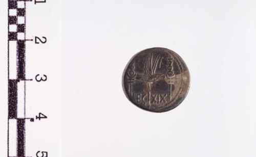 Dritto: nave a d. con scettro sulla prora, bordo puntinato. Rovescio: aquila ad ali spiegate su stendardo che divide la legenda tra due insegne militari