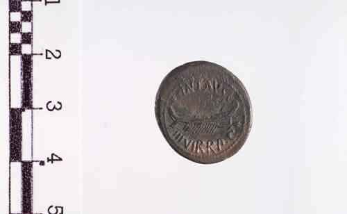 Dritto: nave a d. con scettro sulla prora, bordo puntinato. Rovescio: aquila ad ali spiegate su stendardo che divide la legenda tra due insegne militari