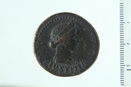 Dritto: Busto drappeggiato e diademato di Iustitia a d.; contorno perlinato. Rovescio: contorno perlinato