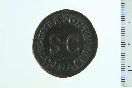 Dritto: Testa laureata di Druso minore a s.; contorno perlinato. Rovescio: contorno perlinato