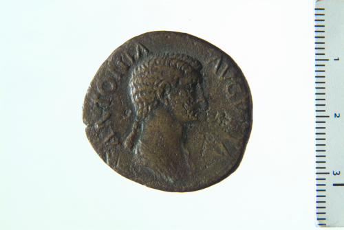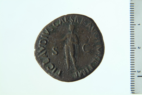 Dritto: Busto drappeggiato di Antonia a d. con capelli legati; contorno perlinato. Rovescio: Claudio velato e togato stante a s. con simpulum;contorno perlinato