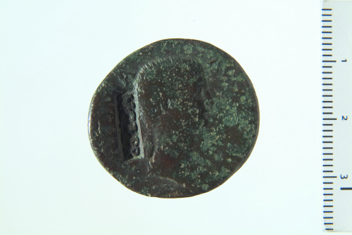 Dritto: Busto drappeggiato di Antonia a d. con capelli legati; contorno perlinato. Rovescio: Claudio velato e togato stante a s. con simpulum;contorno perlinato