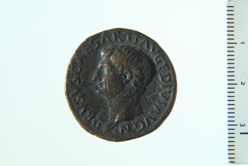 Dritto: Busto di Druso a s.; contorno perlinato. Rovescio: contorno perlinato
