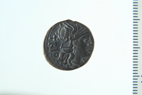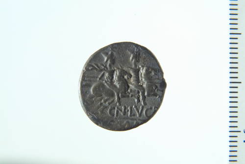 Dritto: Busto di Roma elmato a d.; contorno perlinato. Rovescio: Dioscuri a cavallo a d.; contorno perlinato