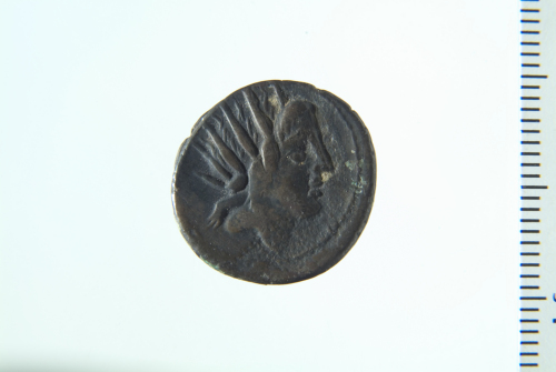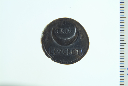Dritto: Busto radiato di Sol a d.; contorno perlinato. Rovescio: Crescente lunare rivolto verso l'alto circondato da sette stelle; contorno perlinato