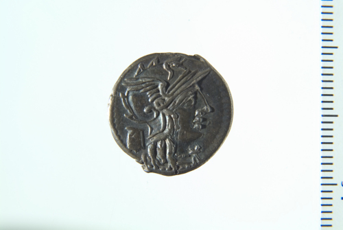 Dritto: Testa elmata di Roma a d., a s. modius; contorno perlinato. Rovescio: Biga in corsa a d. guidata da Vittoria con ghirlanda, frustino e redini; contorno perlinato