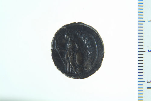 Dritto: Testa laureata e velata di Cesare a d.; contorno perlinato. Rovescio: Venere stante a s. con Vittoria, appoggiata col gomito su uno scudo a terra a sua volta appogiato su un globo; contorno perlinato