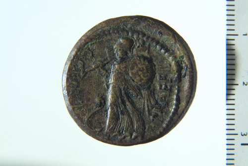 Dritto: Busto drappeggiato di Vittoria a d., a s. stella; contorno perlinato. Rovescio: Minerva stante a s. con trofeo, lancia e scudo, a s, serpente; contorno perlinato