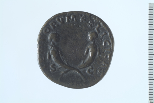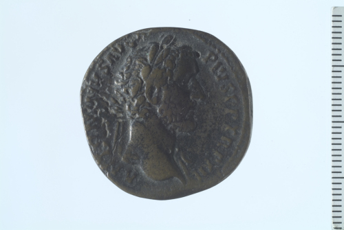 Dritto: Testa laureata di Antonino Pio a d.; contorno perlinato.. Rovescio: Cornucopie incrociate, sormontate dai busti di due bambini; contorno perlinato.
