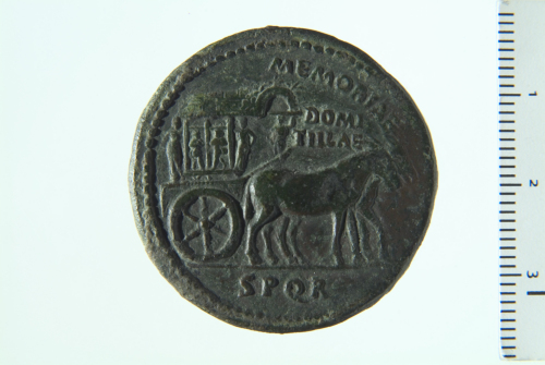 Dritto: Legenda; contorno perlinato.. Rovescio: Carpentum a d., trainato da due muli; contorno perlinato.