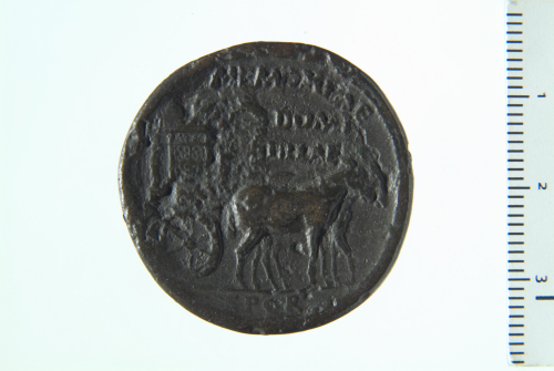 Dritto: Legenda; contorno perlinato.. Rovescio: Carpentum a d., trainato da due muli; contorno perlinato.