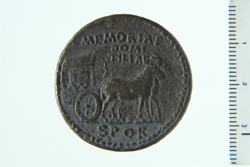 Dritto: Legenda; contorno perlinato.. Rovescio: Carpentum a d., trainato da due muli; contorno perlinato.