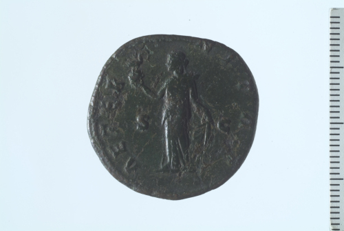 Dritto: Busto drappeggiato di Faustina I a d.. Rovescio: Aeternitas stante a s., in atto di sollevare la tunica e recante fenice su globo.