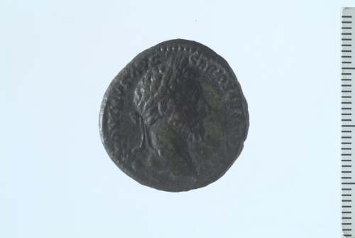 Dritto: Testa laureata di Marco Aurelio a d.; contorno perlinato.. Rovescio: Nave con quattro marinai a s.; sulla prua, Nettuno stante a s., recante tridente e delfino; contorno perlinato.