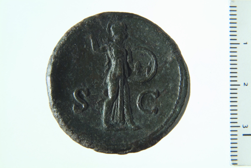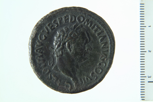 Dritto: Testa laureata di Domiziano a d.; contorno perlinato.. Rovescio: Minerva avanzante a d., reggente scudo nella s. e giavellotto nella d.; contorno perlinato.