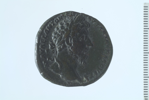 Dritto: Testa laureata di Marco Aurelio a d.; contorno perlinato.. Rovescio: Marte stante a d., recante lancia e con mano s. appoggiata su uno scudo; contorno perlinato.